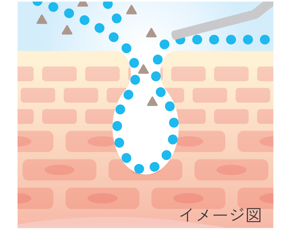超音波の振動によって毛穴の奥まで洗浄。