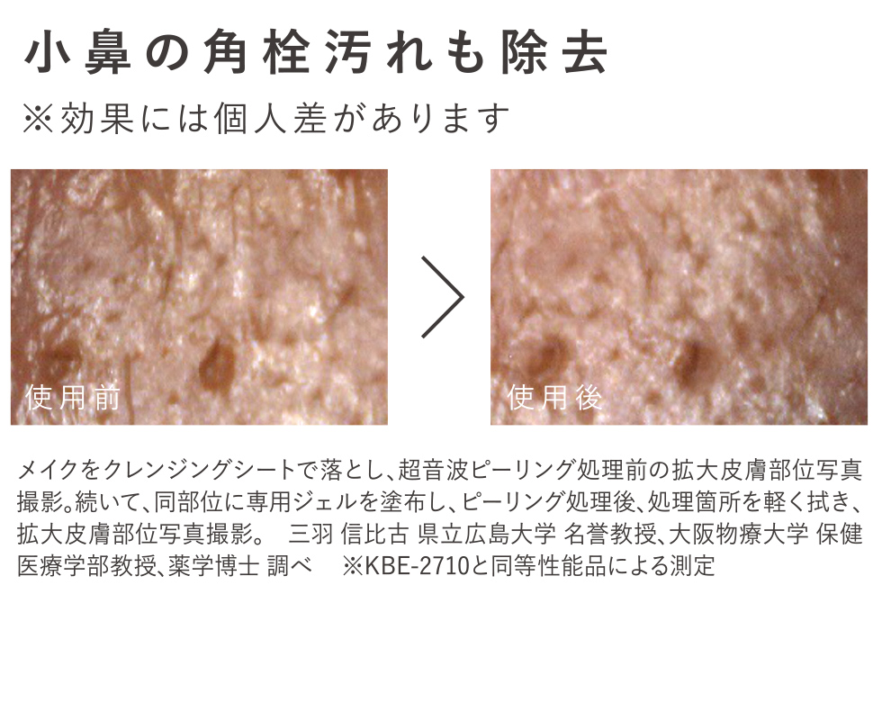 超音波ピーリングの力で古い角質をやさしく取り除き、なめらか肌へ導いてくれます。