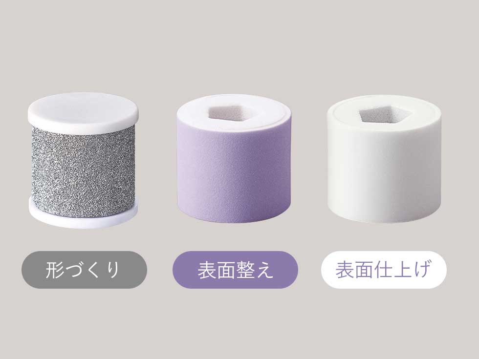 形づくり(2個)、表面整え(2個)、表面仕上げ(2個)の3種のアタッチメント。