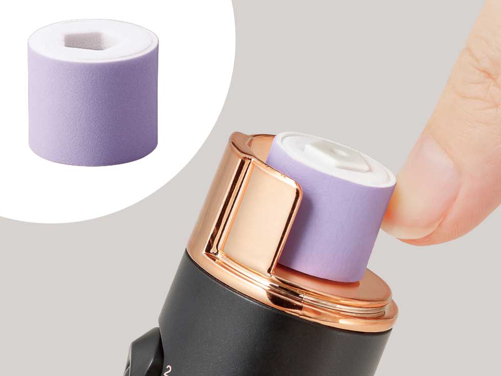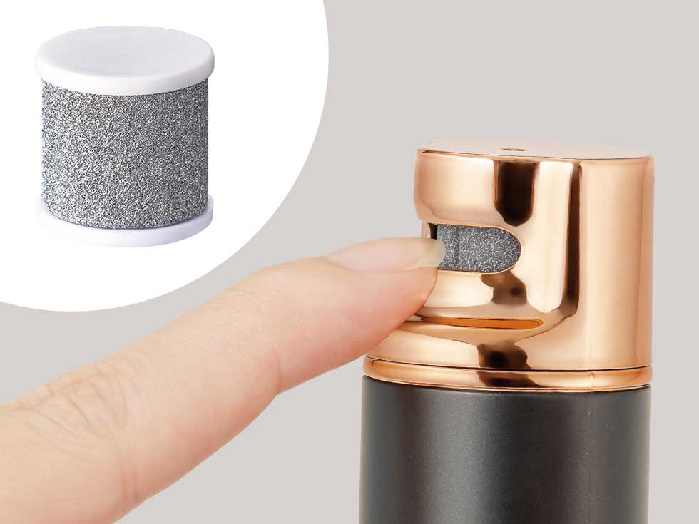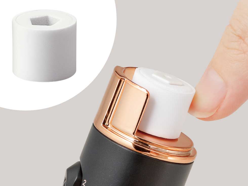 ヘッドカバーを装着し、やすり部に爪の先をあて、長さや形を整えます。