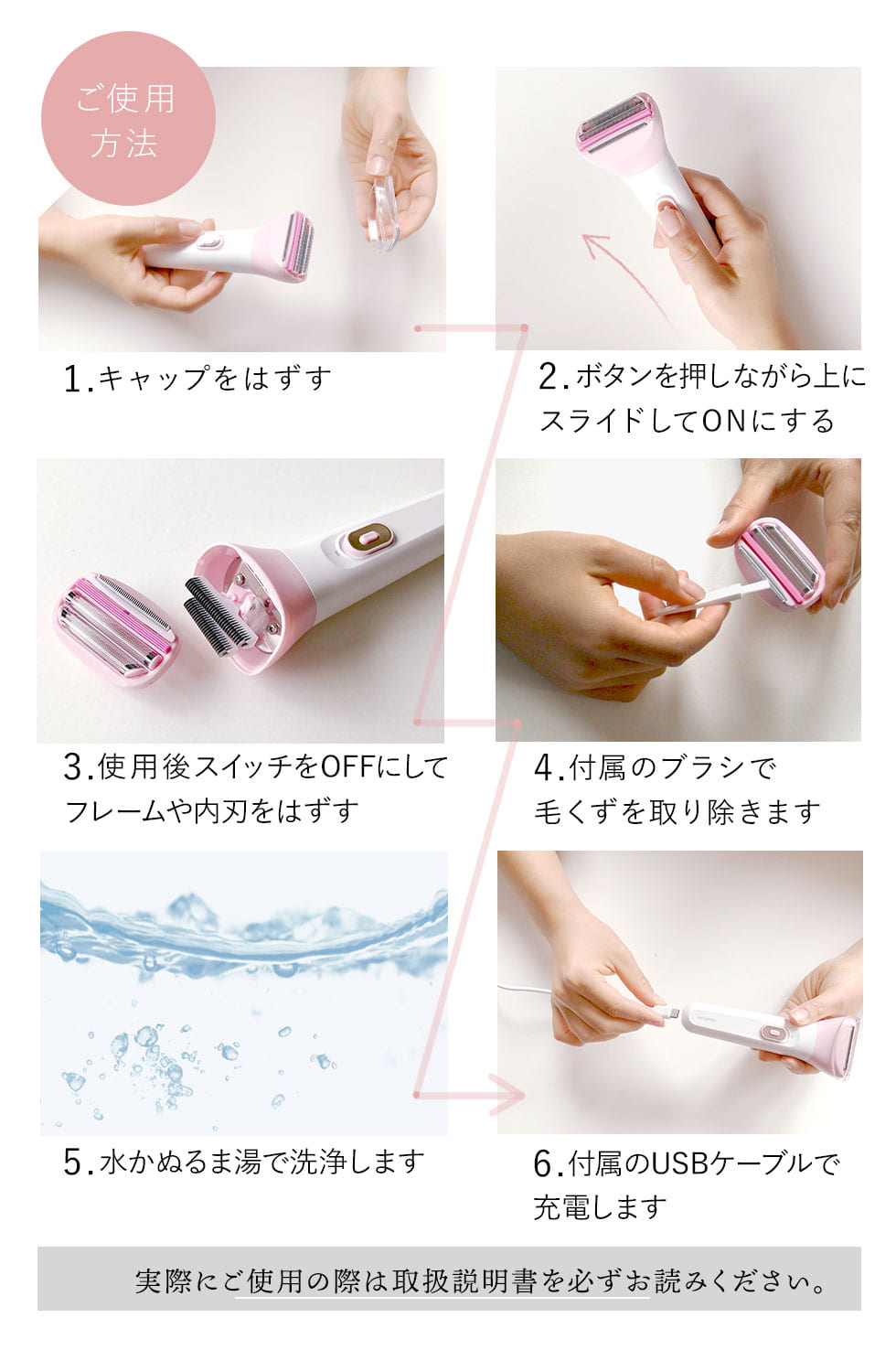 うで、わき、あし、ビキニラインのうぶ毛や残った毛の処理に便利です。 脱毛サロンの前にもおすすめです。