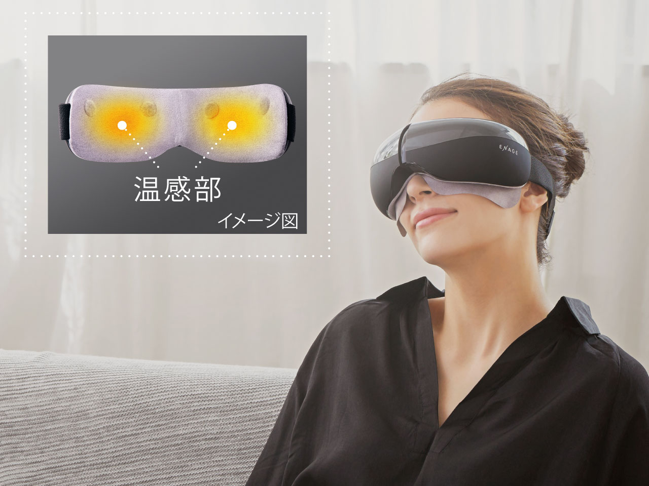 ここちよい「温め」+ほどよいエアの「空気圧」+こめかみにやさしい「振動」でリフレッシュ。