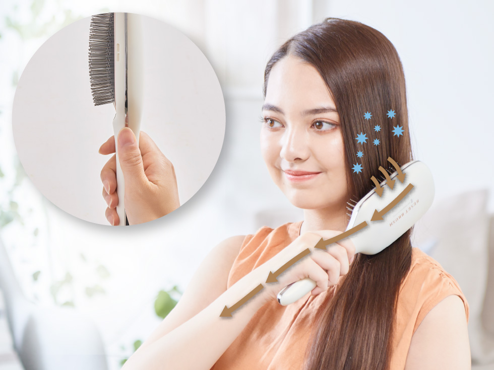 音波振動で髪の絡まりを軽減するリセットブラシなら、