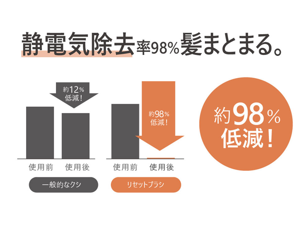 リセットブラシは、乾いた髪専用です。濡れた髪には使用しないでください。