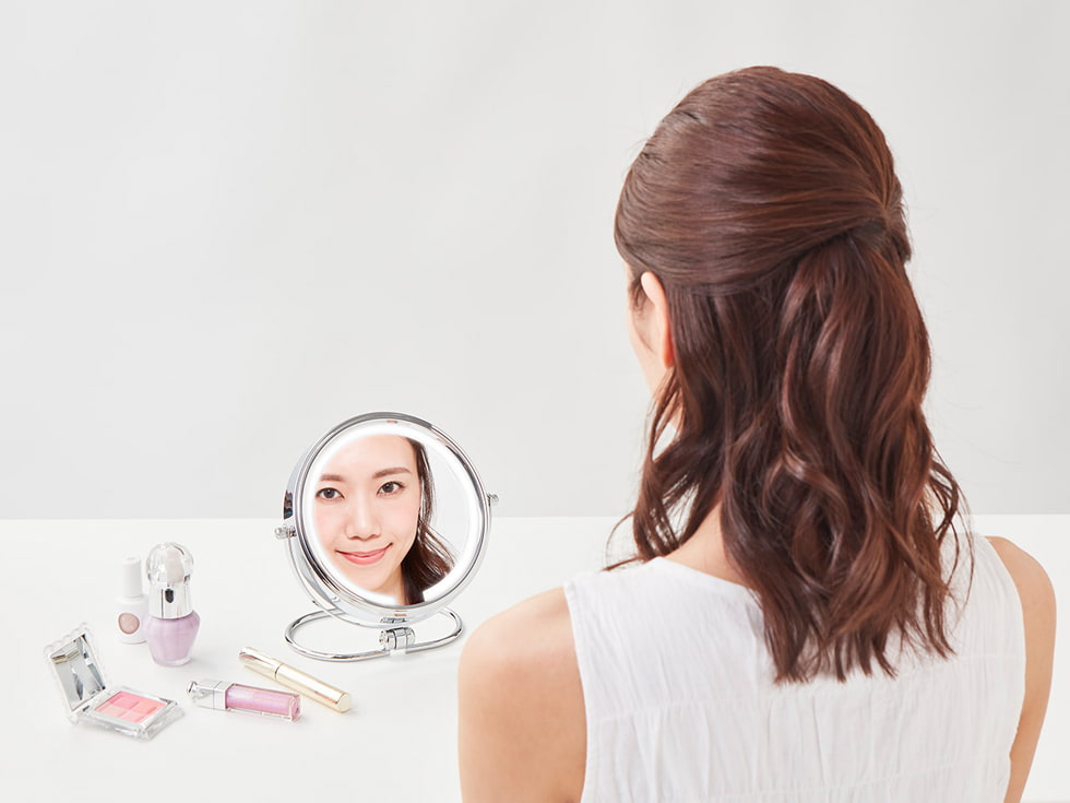 鏡まわりのLEDライトで、お肌を均一に照らし、細部までしっかり確認。