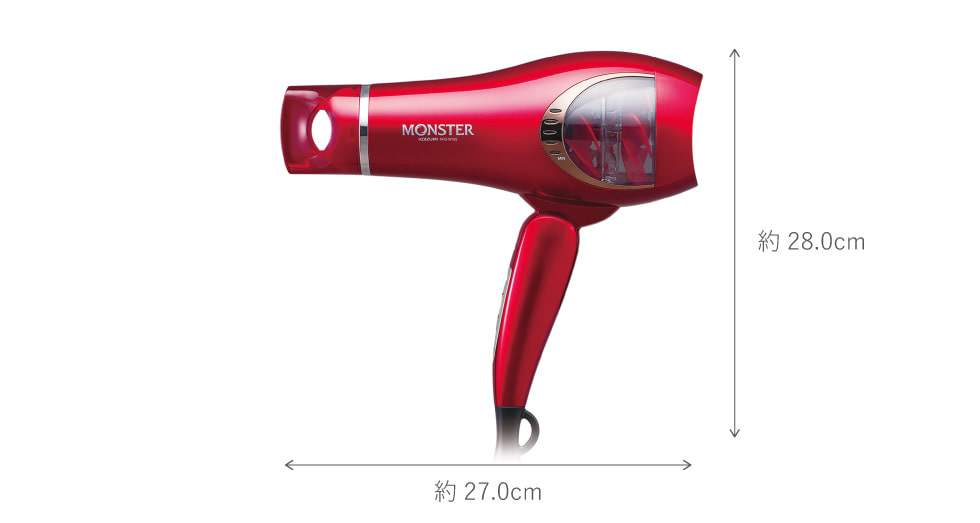 大風量でもマイナスイオンを髪全体に行き渡らせて美しく乾燥させます。