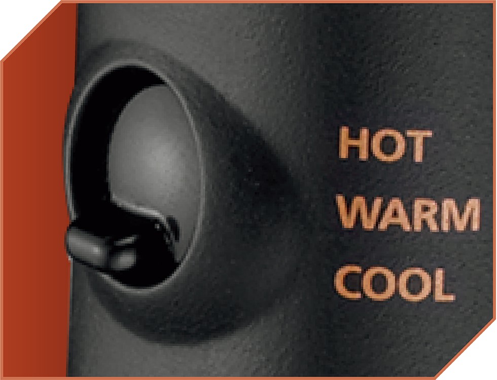 2段階の温風温度切替。