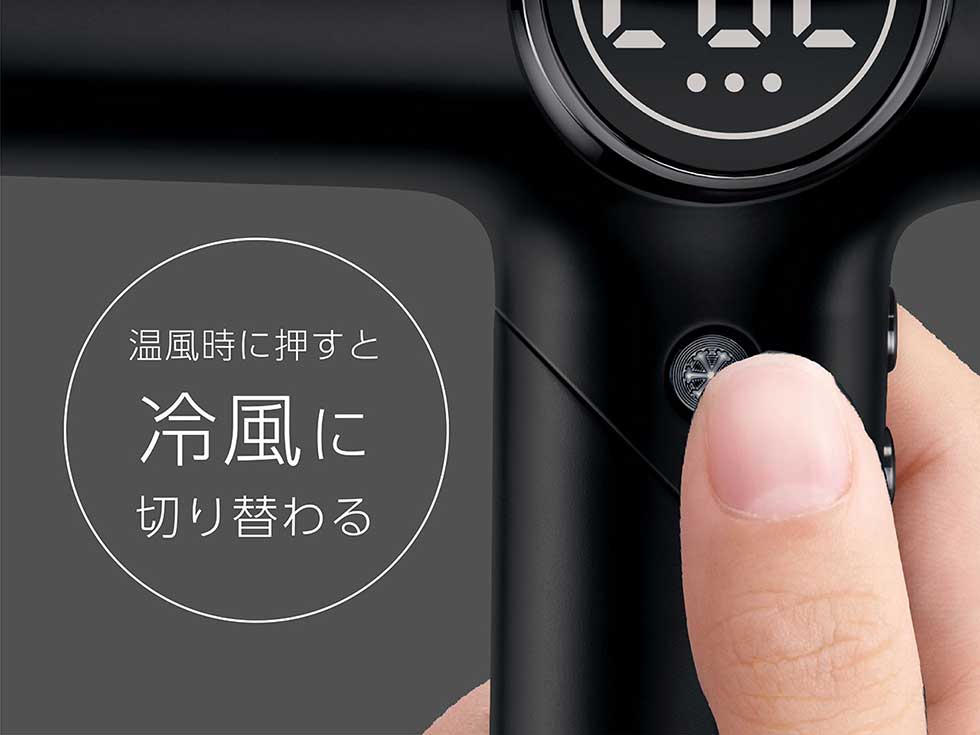 全体に冷風をあてるとクセづけやツヤ出しがしやすく、ヘアスタイルを長時間キープします。