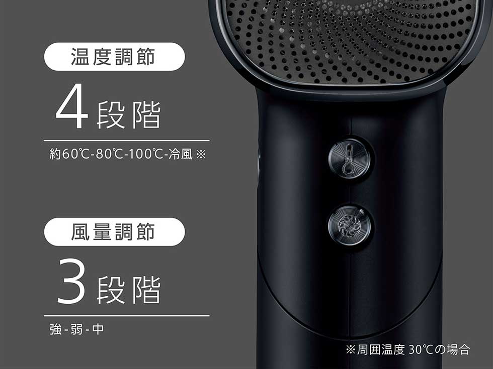 温度調節4段階(60℃-80℃-100℃-冷風)