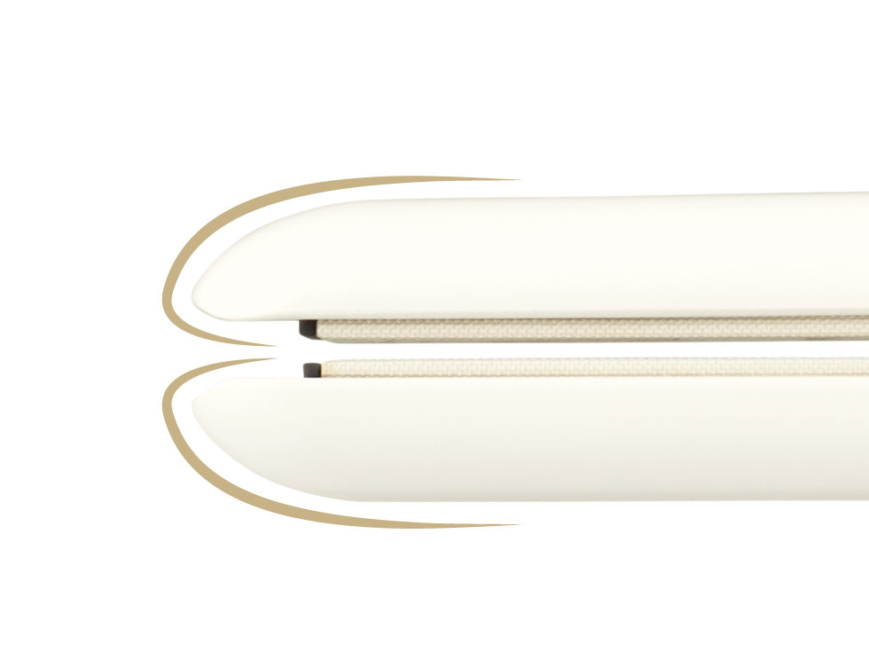 プレートが沈むことで髪への余分な圧力を減らしながら、髪をしっかりキャッチします。