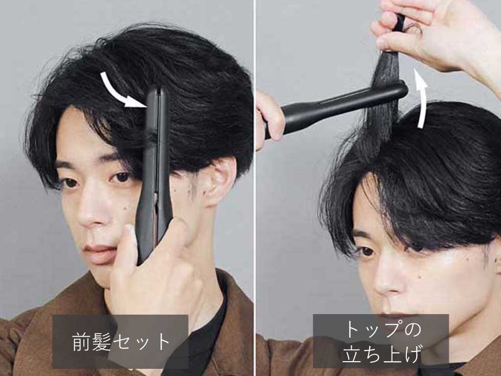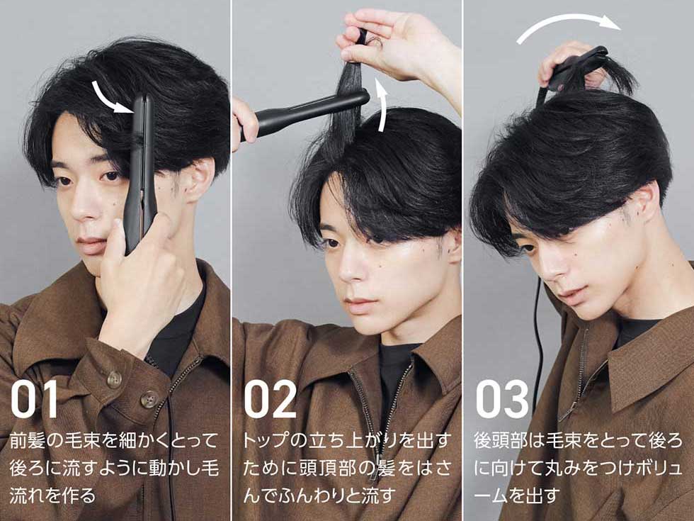 Step2) 分け目部分は根元から髪をはさんで、ふんわりとした動きをつける