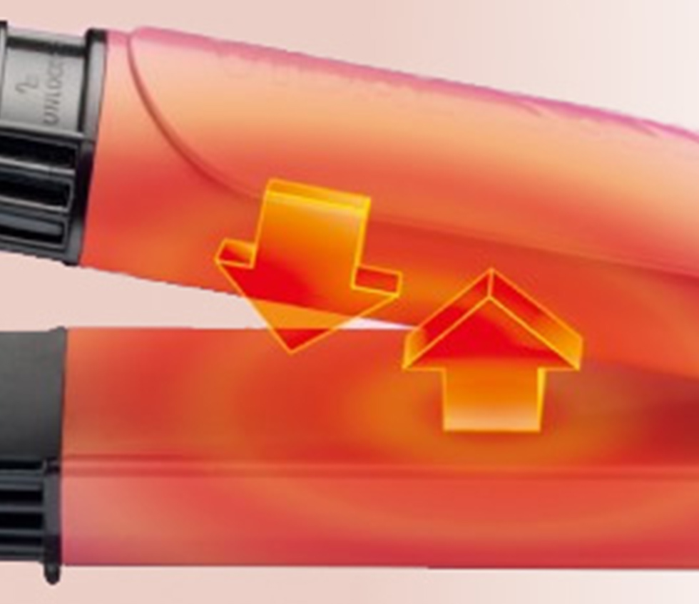 髪に熱をやさしく素早く伝える、クリスタルピンクコーティング。