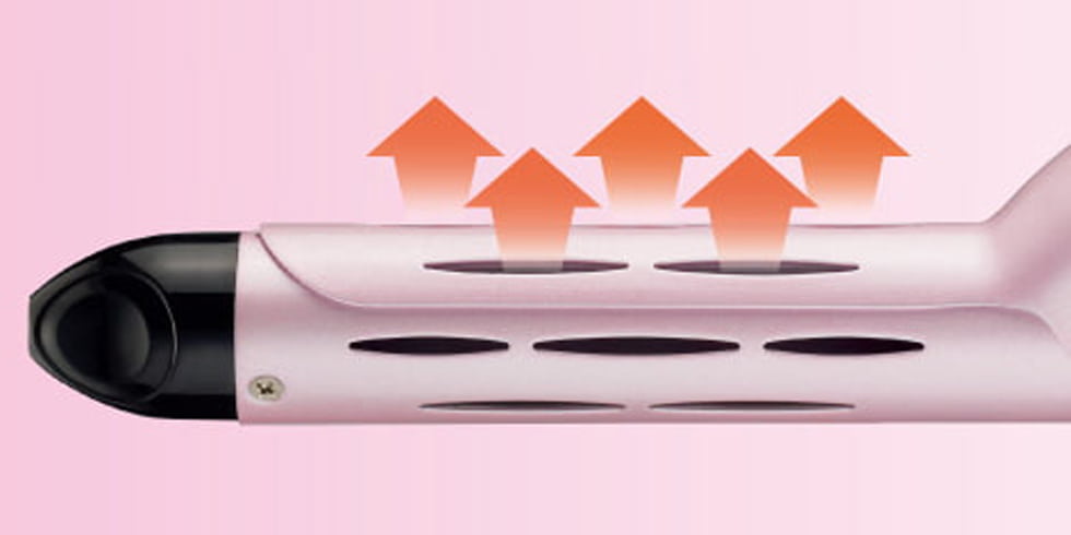 パイプの穴から出る温風により毛束の内側まで熱が浸透し、スピーディーにスタイリング。