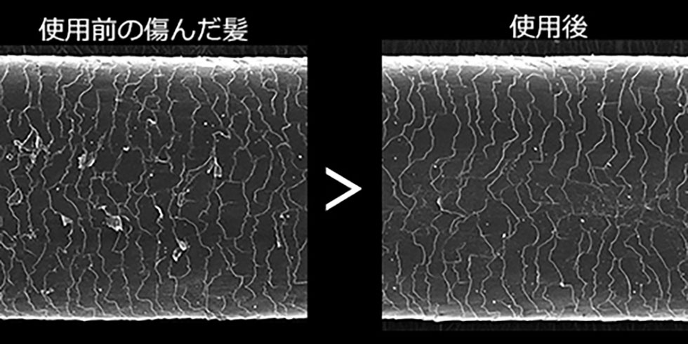 ※県立広島大学 名誉教授、薬学博士、NPO法人 日本老化防御医科学センター 三羽 信比古 理事長調べ VSS-9710/KJで超音波ミスト使用、200°Cの温度設定で使用(被験者20代女性3名) ※効果は髪質等により個人差があります。