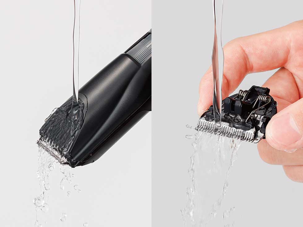 本体一体型のスキ刈りコームで自然な仕上がりに。