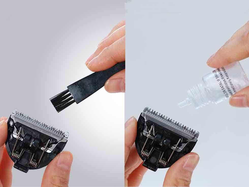 刃をお手入れできる掃除用ブラシやオイルが付属。