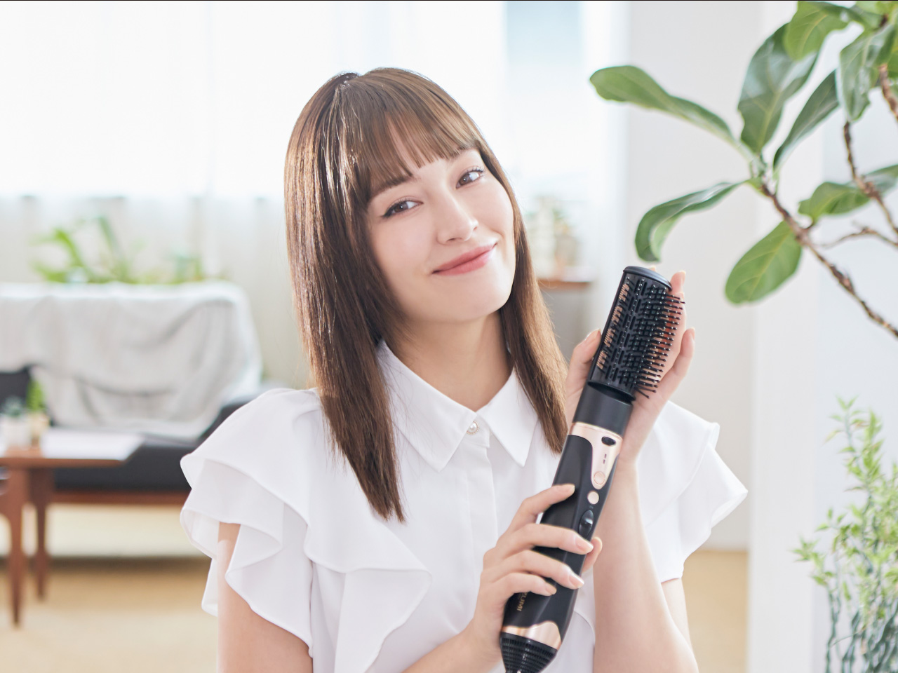 ブラシの形状の丸みを利用して、内巻きや外巻き、前髪のスタイリングに。