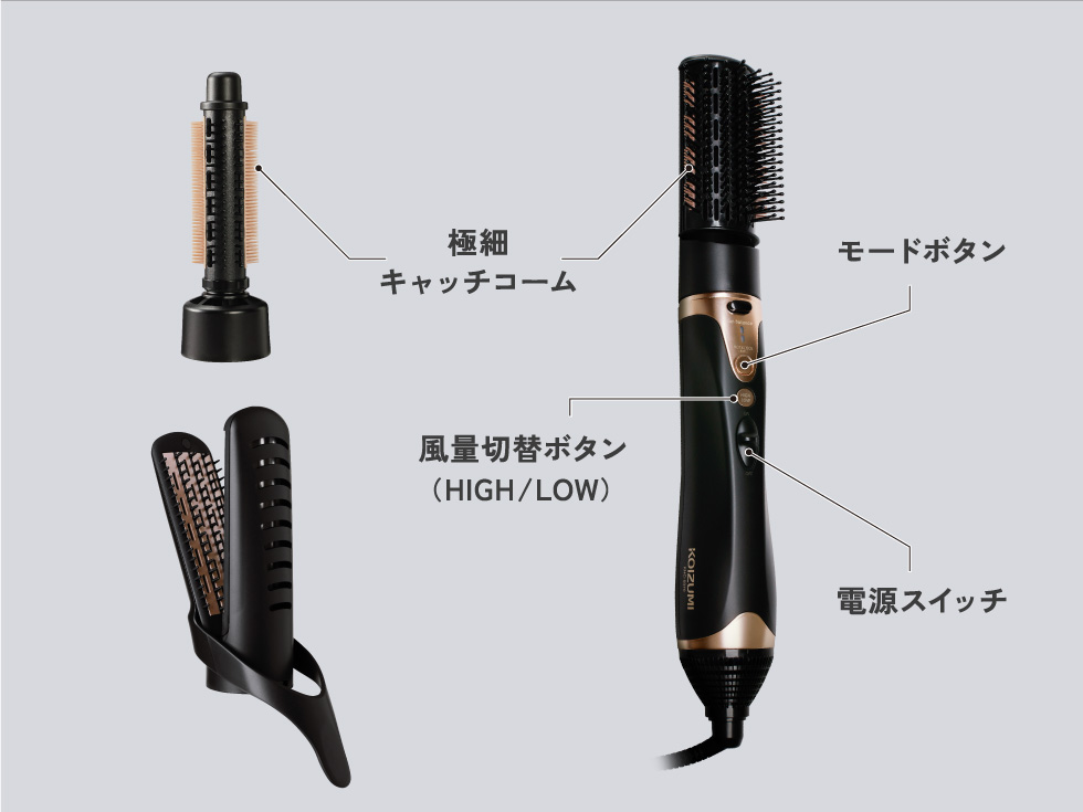 極細キャッチコームが毛先をとらえてしっかりカール。