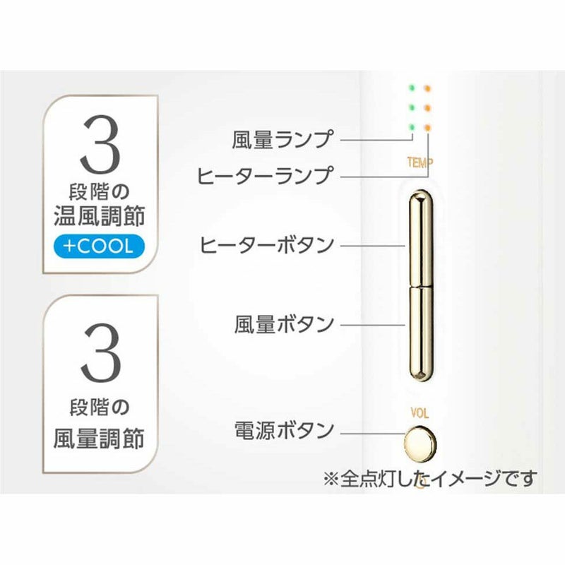 3段階の風量調節×3段階温風調節+COOL