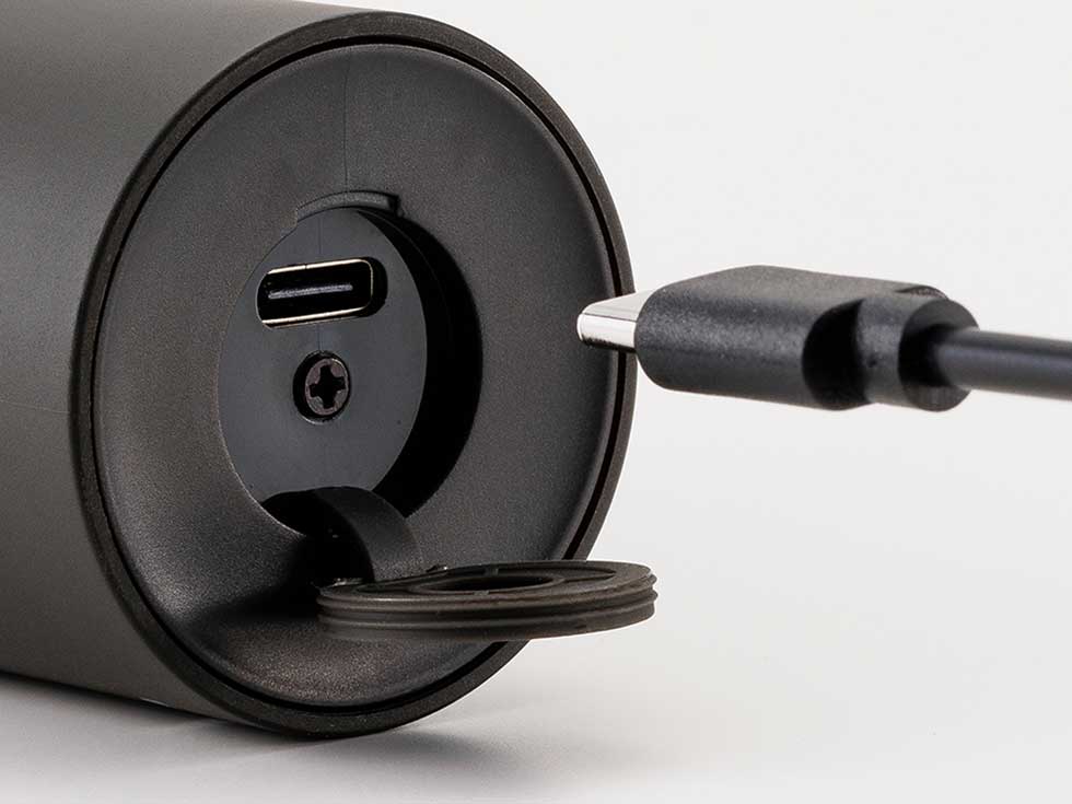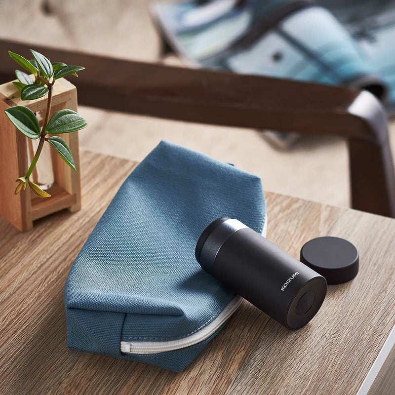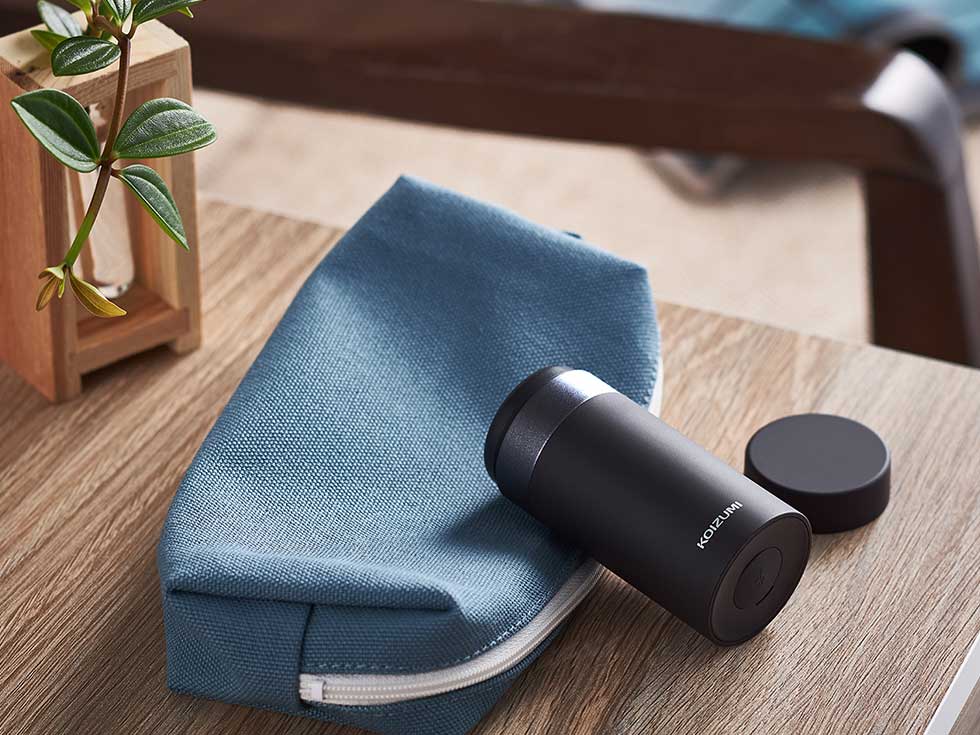 スマートに持ち運べる円柱型のシンプルデザイン。