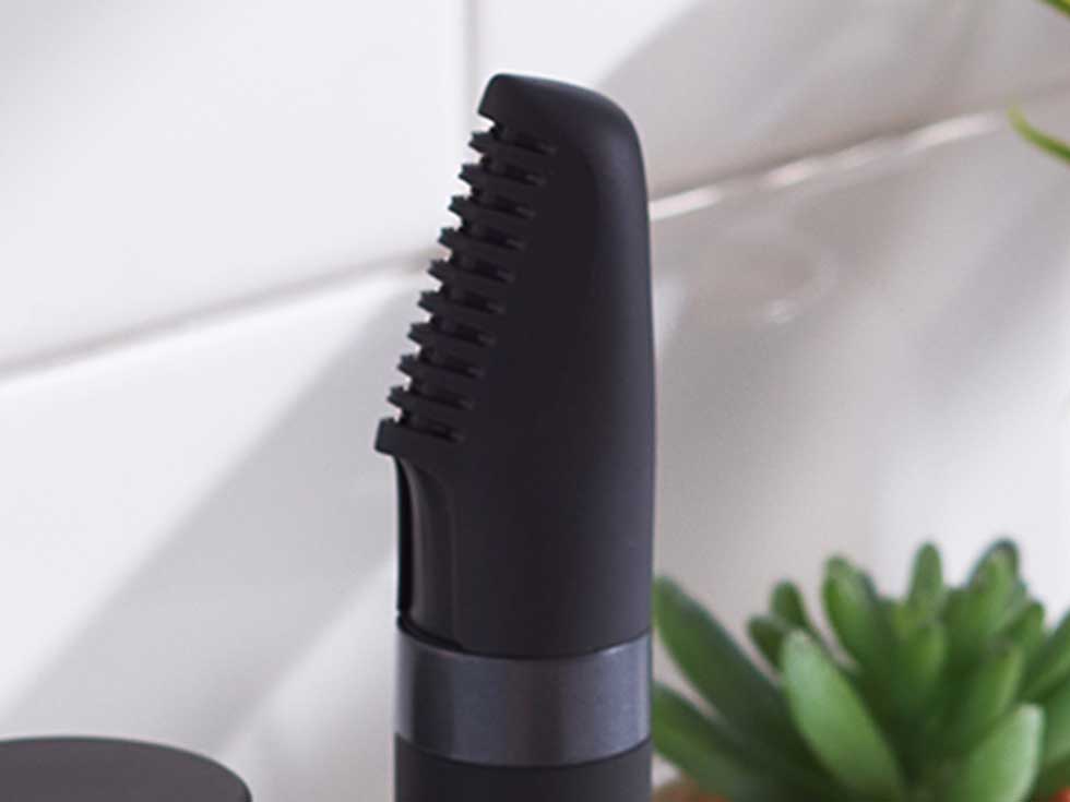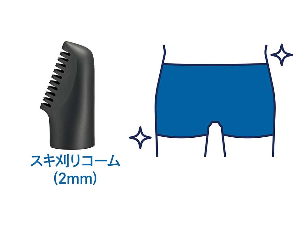 肌に刃が直接触れにくいスキ刈りコームが付属。