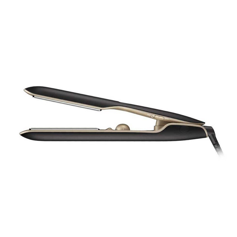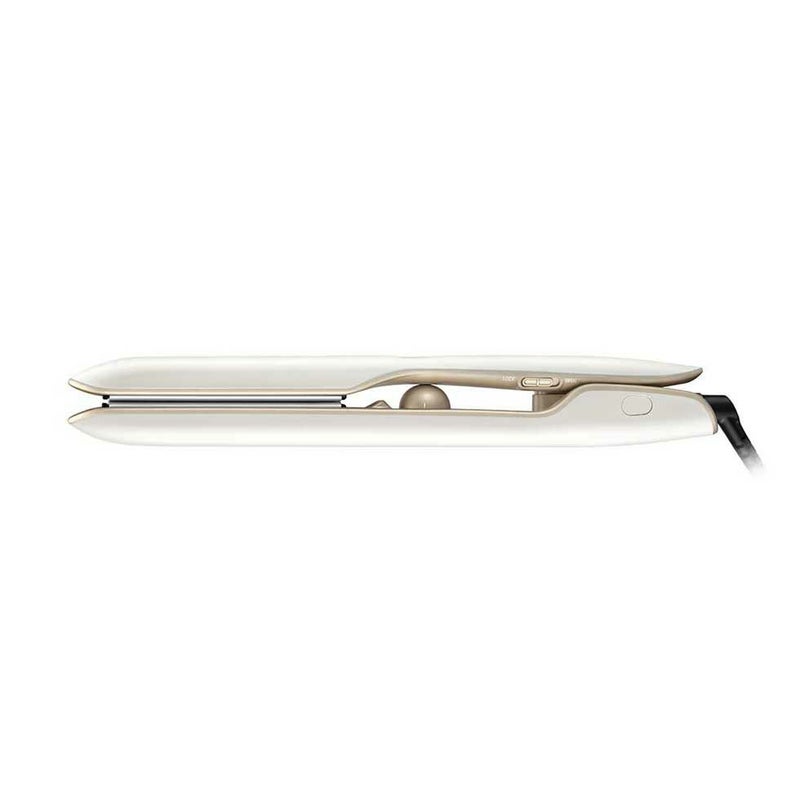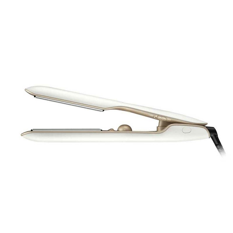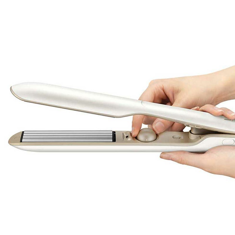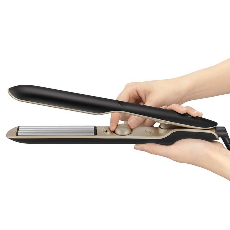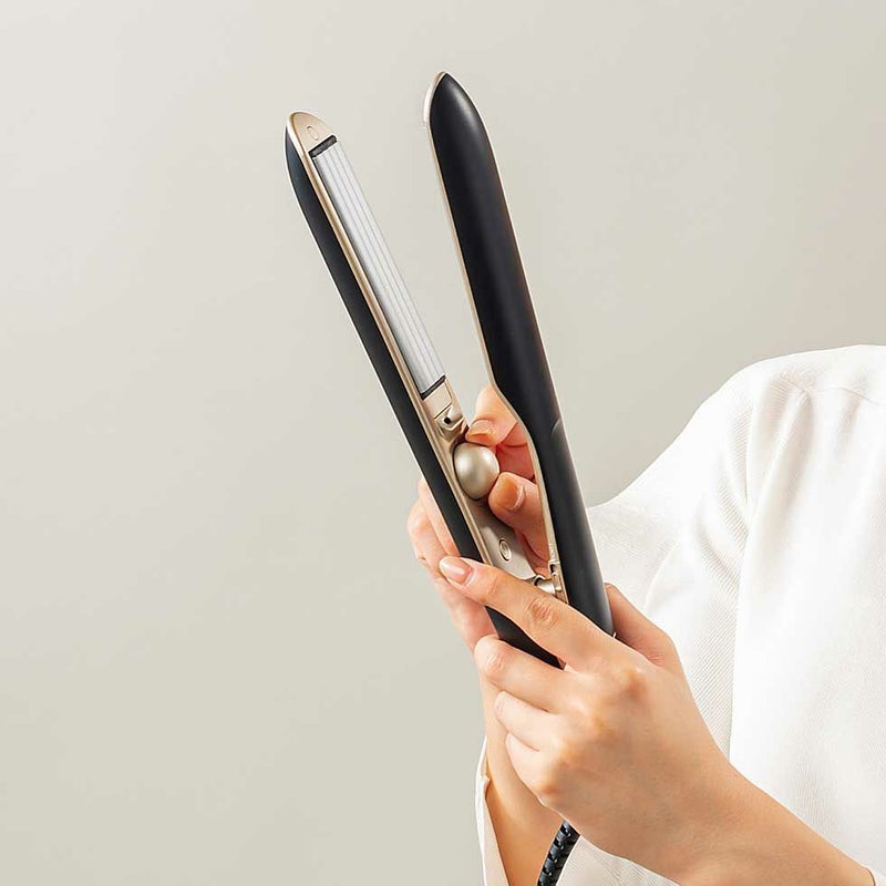 髪への接触面積を減らす溝のついたプレートで、髪の負担を少なくヘアセットが可能。