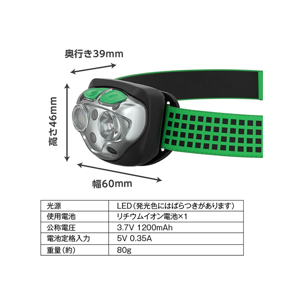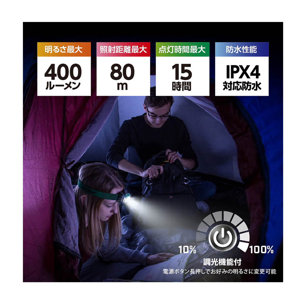 明るさ/点灯時間 ハイモード  :400lm/ 4時間