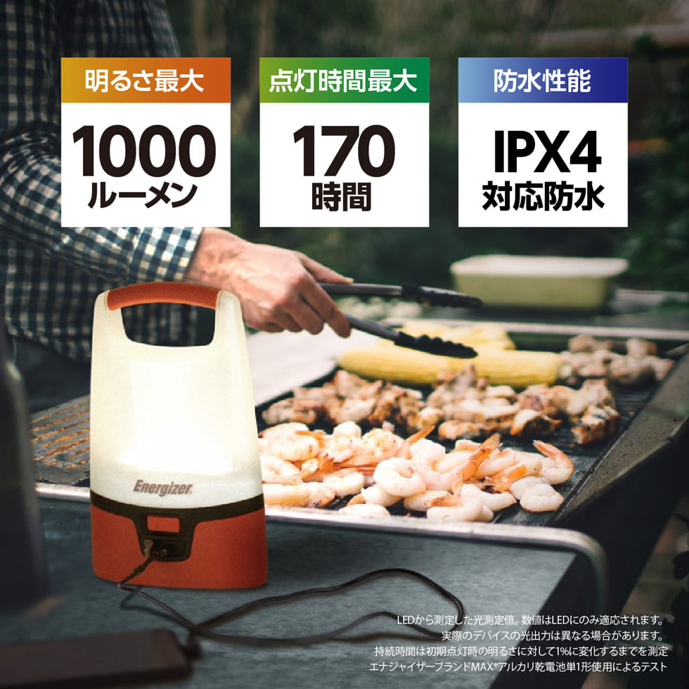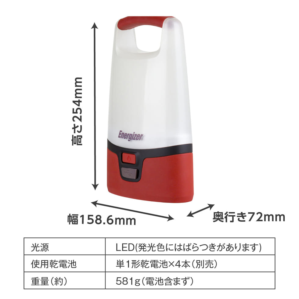 点灯時間最大約8時間(単1使用時)