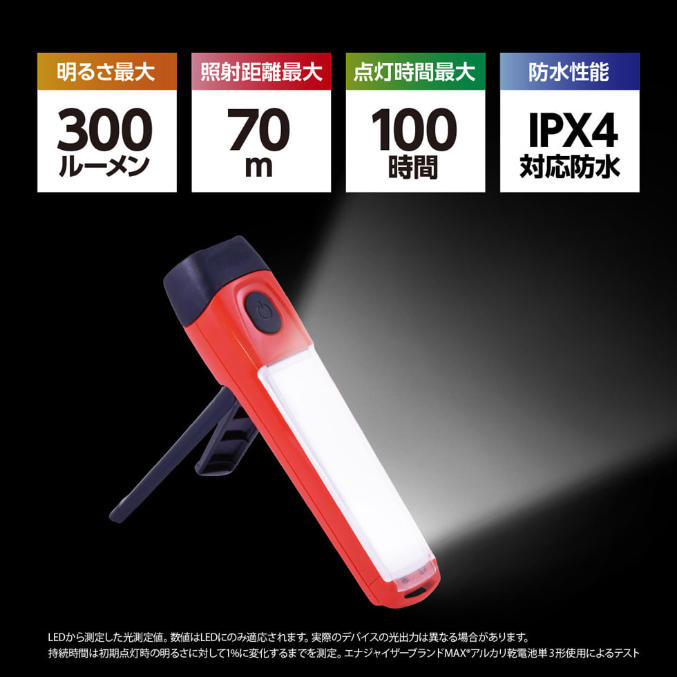 明るさ最大300ルーメン(ハイモード)