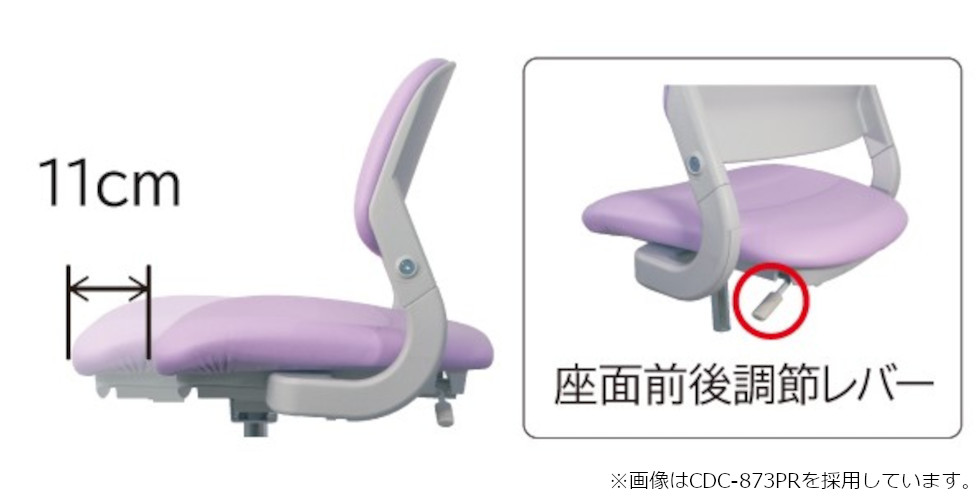 座面の奥行きは座面下のレバーで前後11㎝簡単にスライド調節できます。