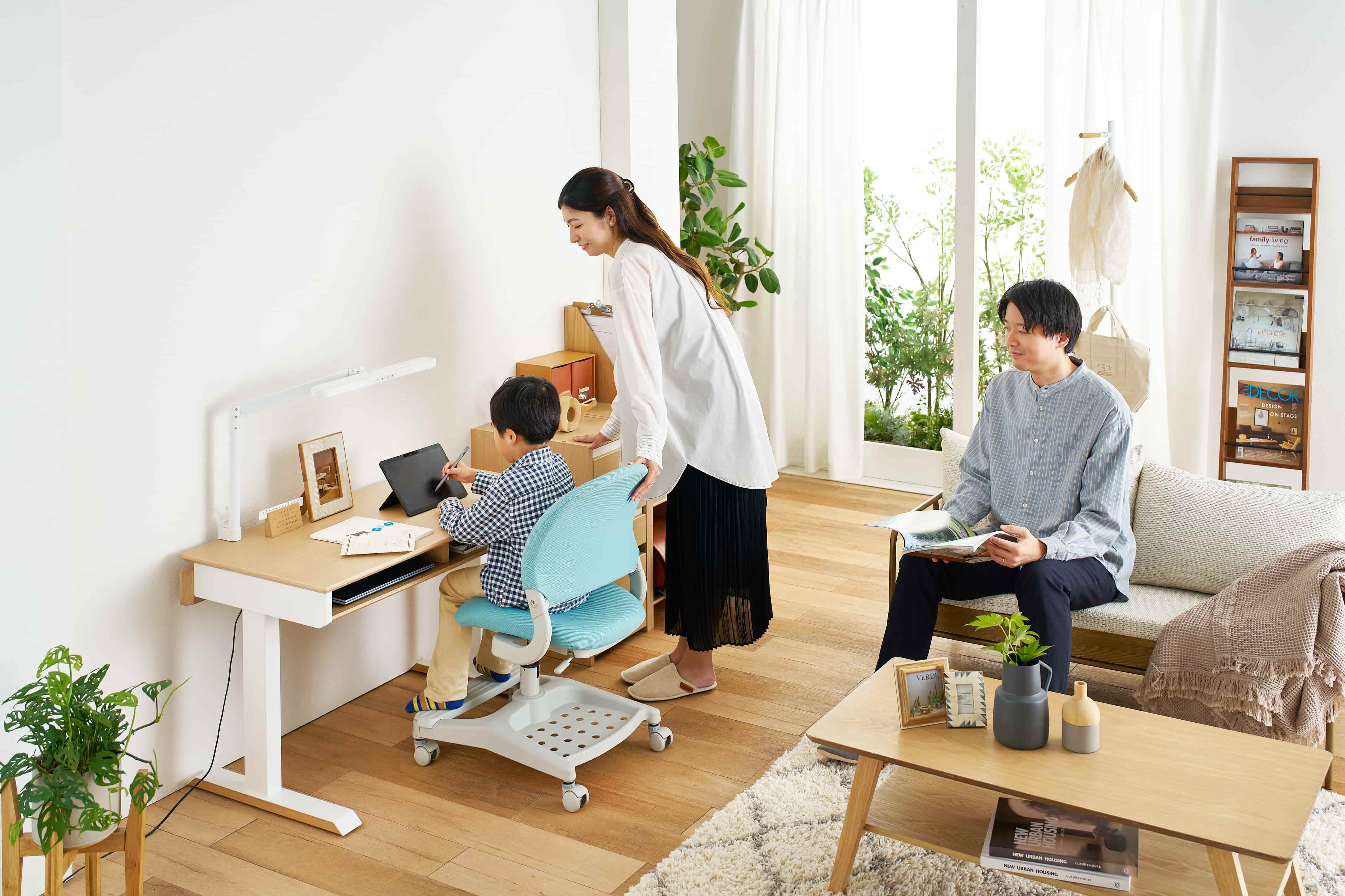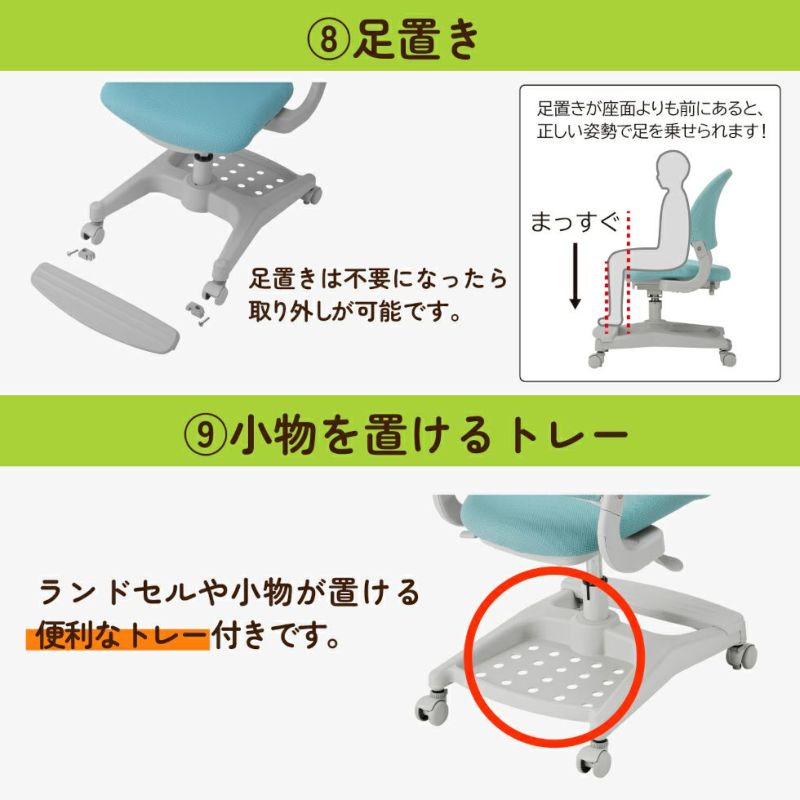 座面は回転しないので、落ち着いてデスクに向かえます。コイズミファニテックの人気の学習イスです。