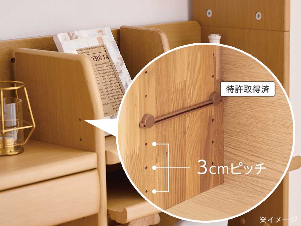 棚板の高さは、3cmピッチ6段階で調節できます。