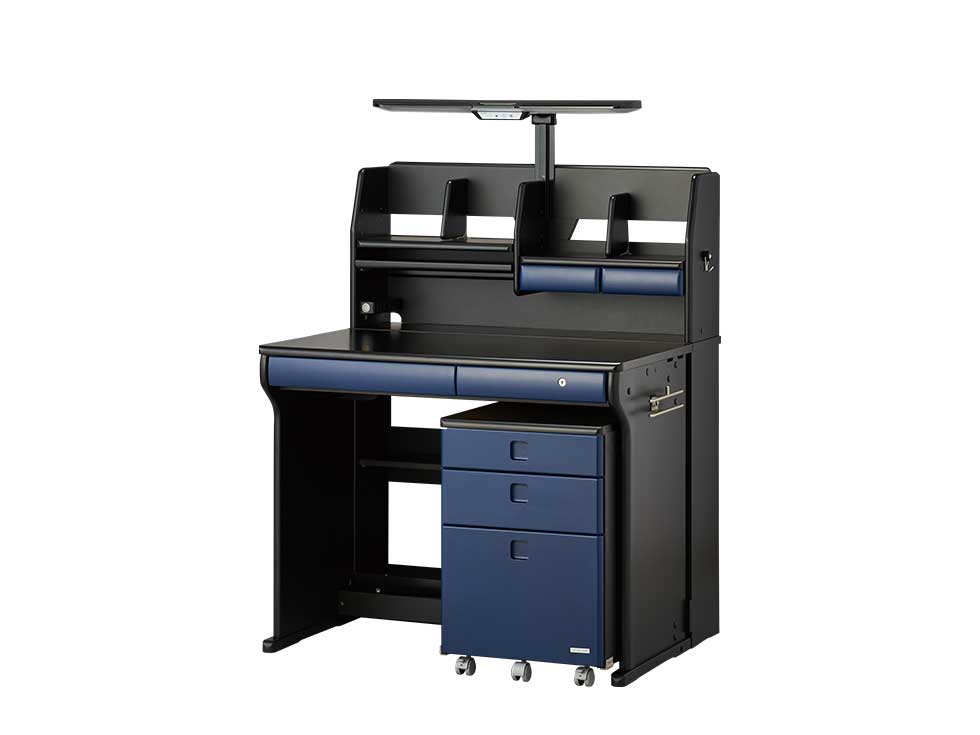 デスク、シェルフ、ワゴン、デスクライトの