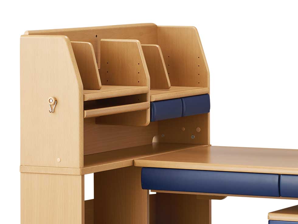 仕切板は下向きにも配置できるので、スライドさせて本やノートの量に合わせてすっきり収納できます。