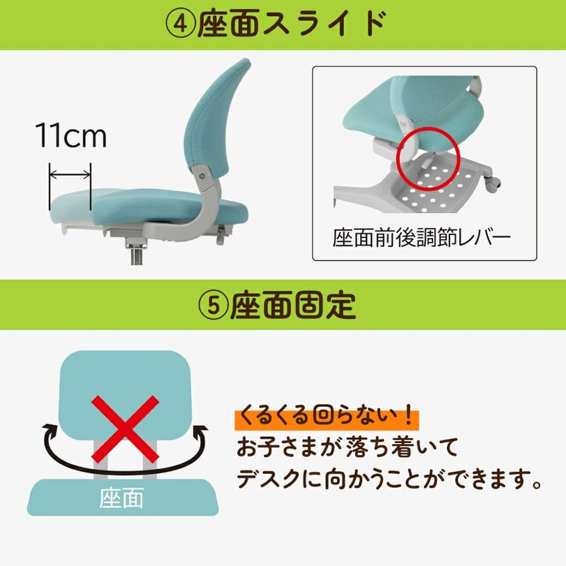 座面は回転しないので、落ち着いてデスクに向かえます。コイズミファニテックの人気の学習イスです。