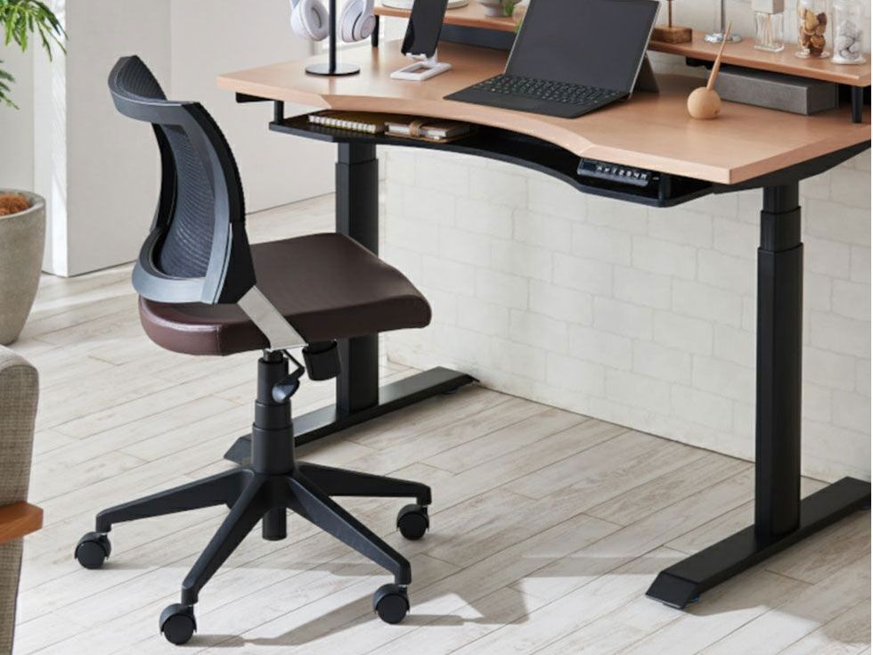 背もたれのシャープな曲線が身体にフィットする回転チェア