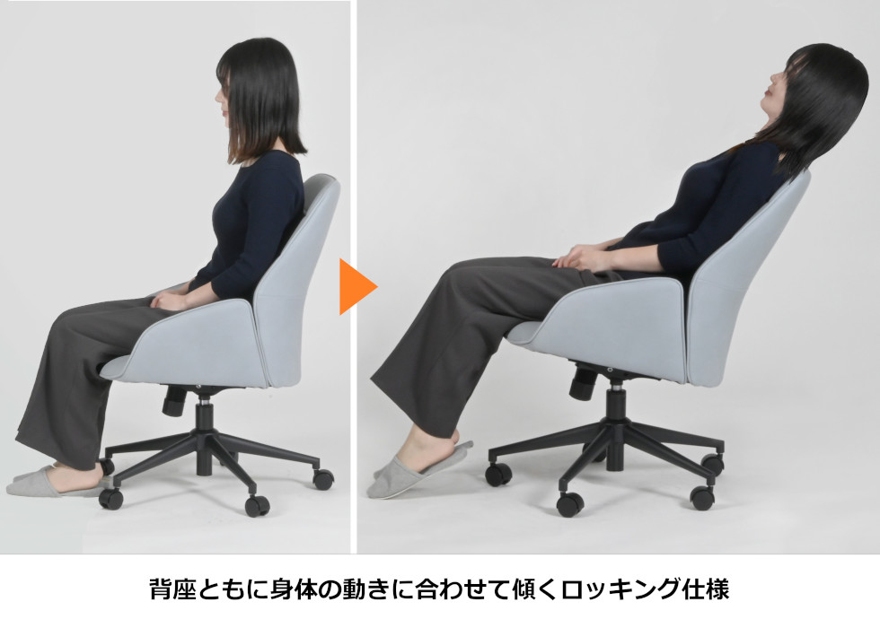背座ともに身体の動きに合わせて傾くロッキング仕様で、作業の合間にリフレッシュすることができます。