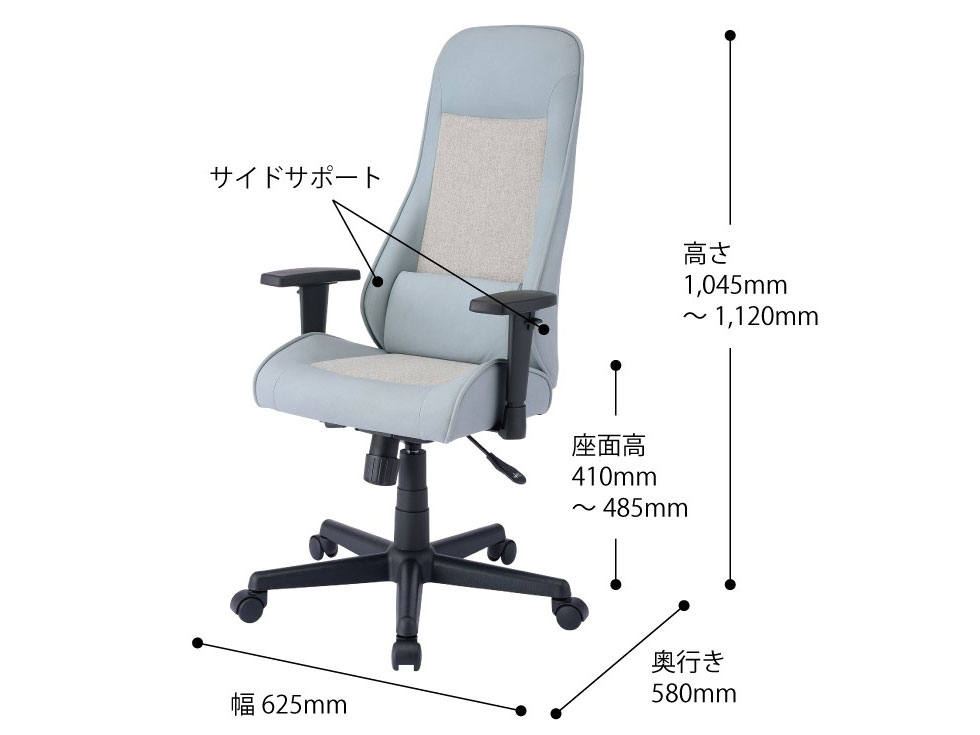 座って右側のレバーを上げると座面高を410~485㎜に調整可能です。