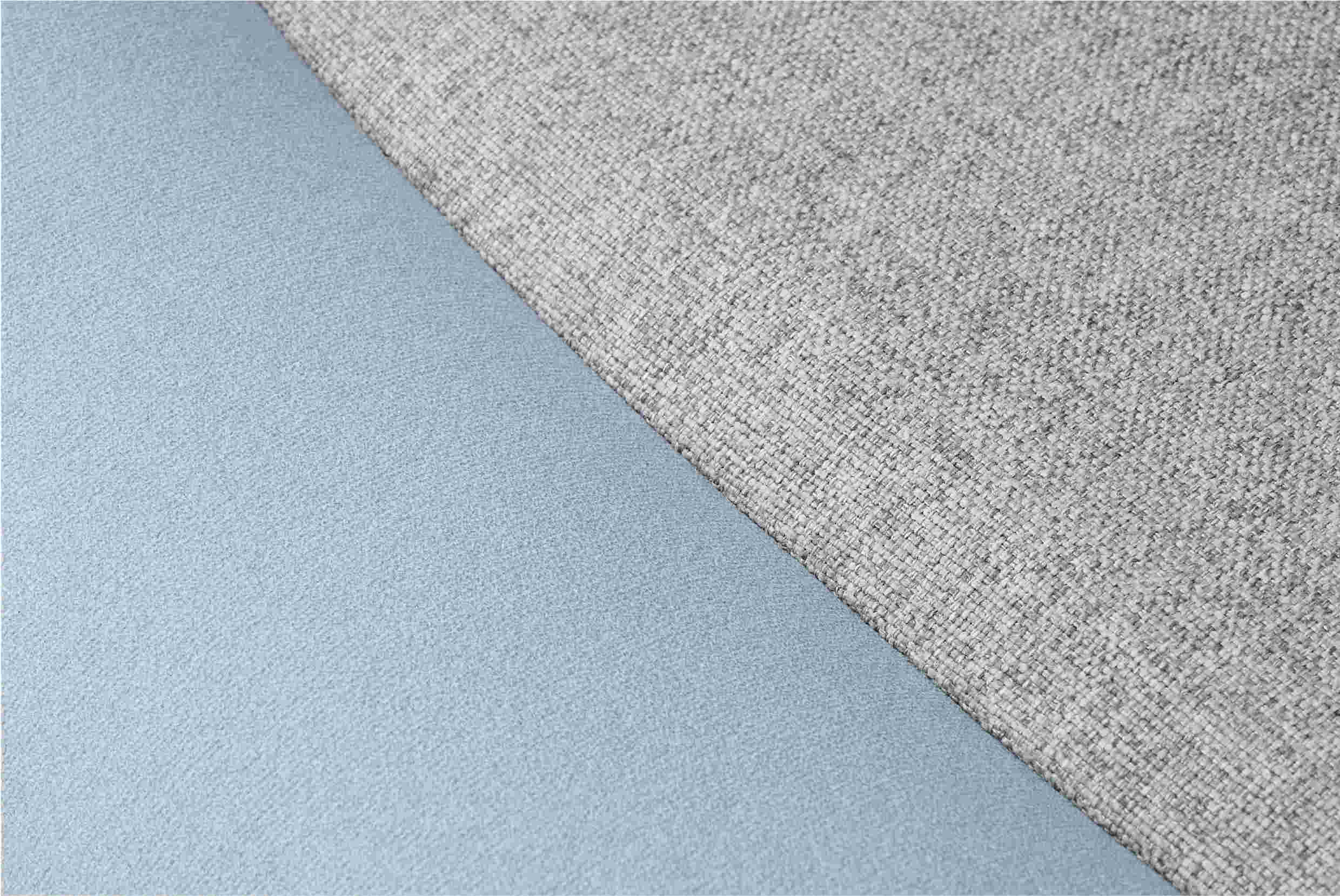 ヌーボーチェアの背座面はスエード調生地とファブリックを組み合わせた肌ざわりの良い張地を使用しています。やわらかくやさしい印象のテイストです。