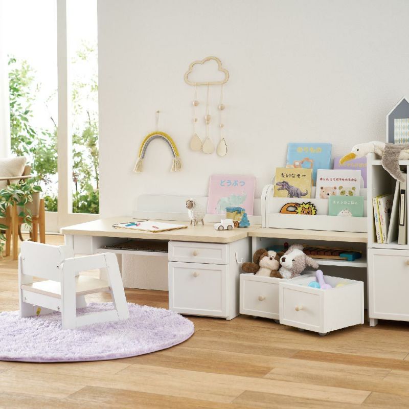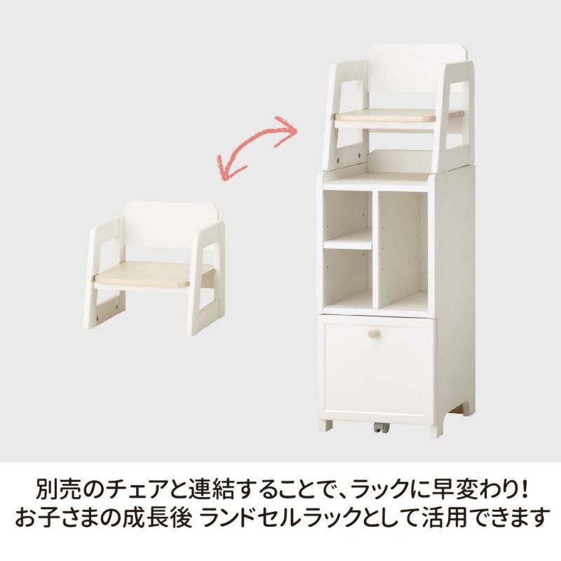 チェアが小さくなったときや、ランドセルの置き場に困ったとき、チェアと別売のシェルフを連結させることで、ランドセルラックとして活用できます。