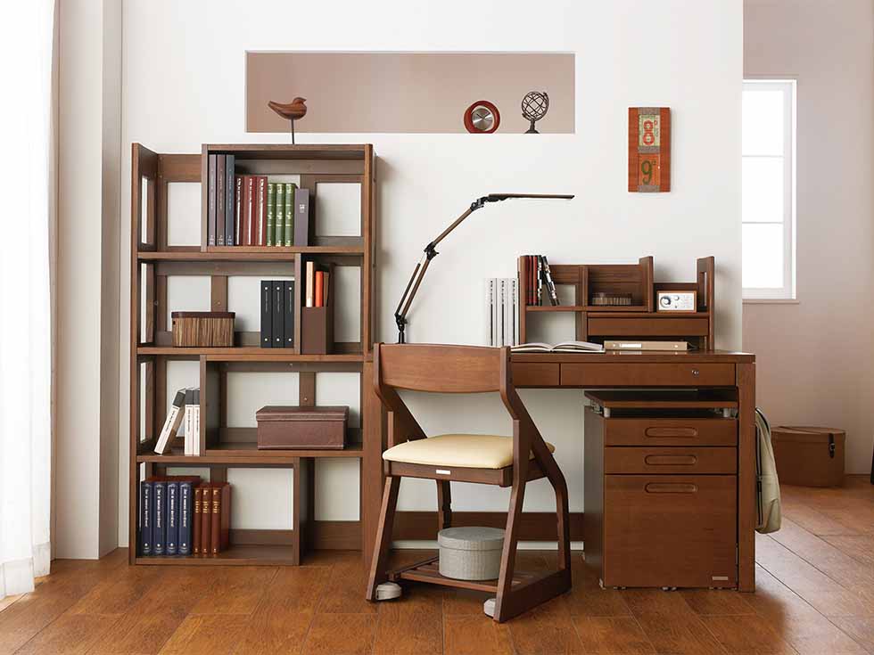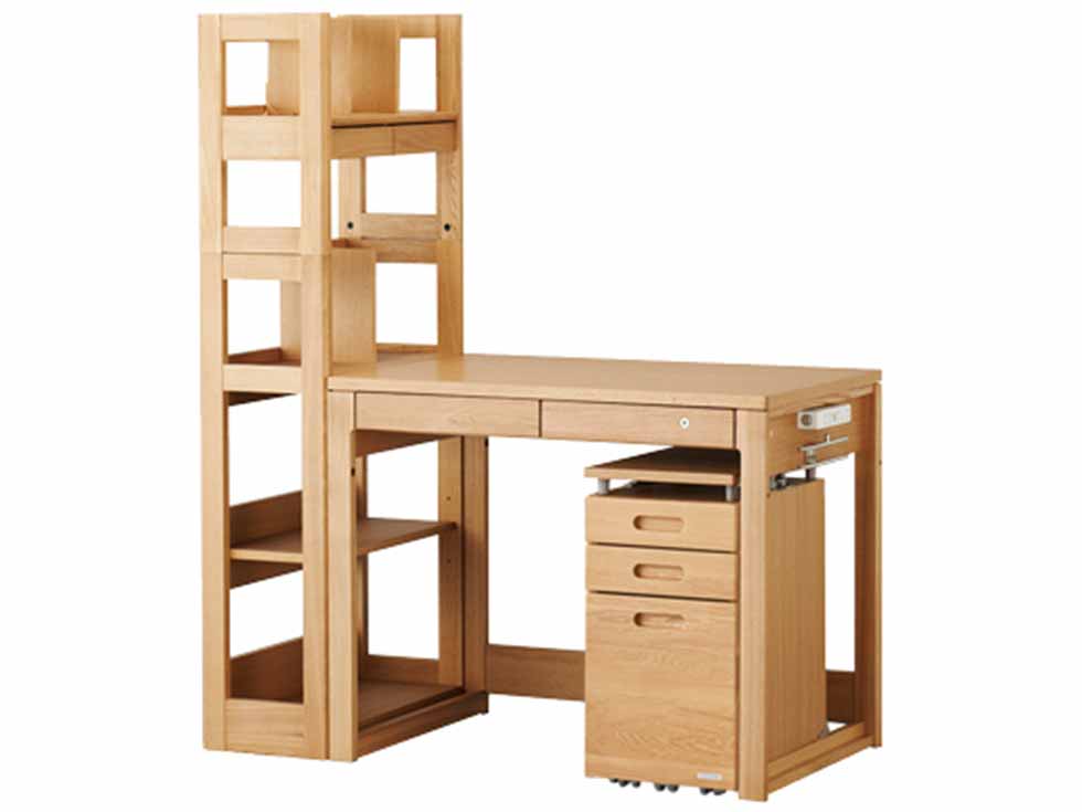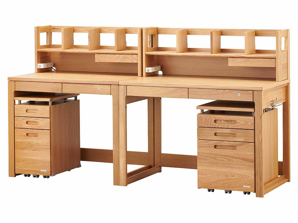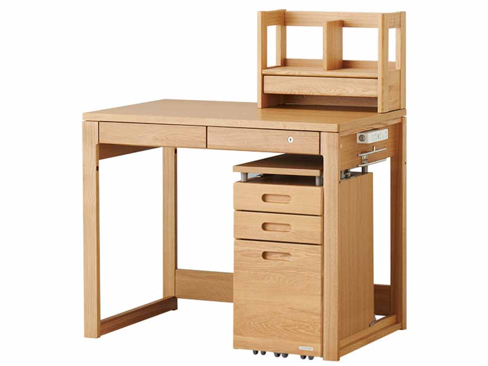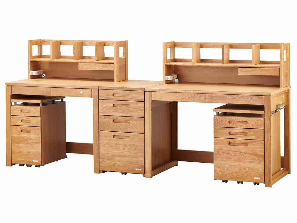 デスクは天板に高級感のあるナラ材を使用し、飽きのこないシンプルなデザインに仕上げました。
