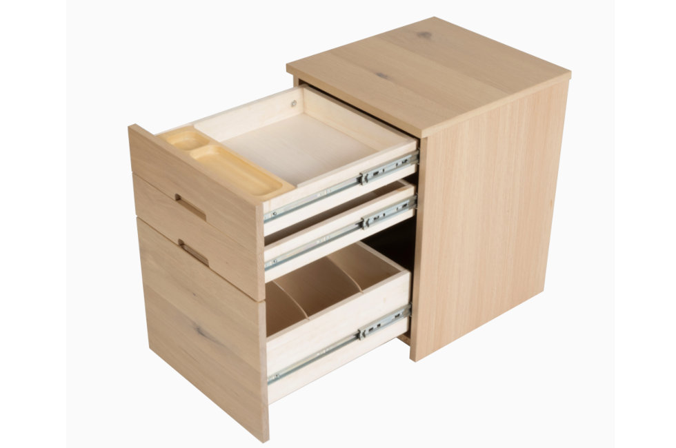 引出最上段には木製ペントレー付き