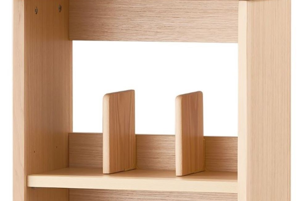 可動仕切り板はスライドさせて本やノートの量に合わせてすっきり収納できます。2カ所ある可動棚は3段階に高さ調節できます。