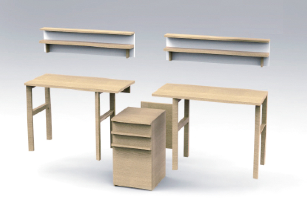 デスク2台の中心にキャビネットを設置し、2台連結してお使いいただけます。