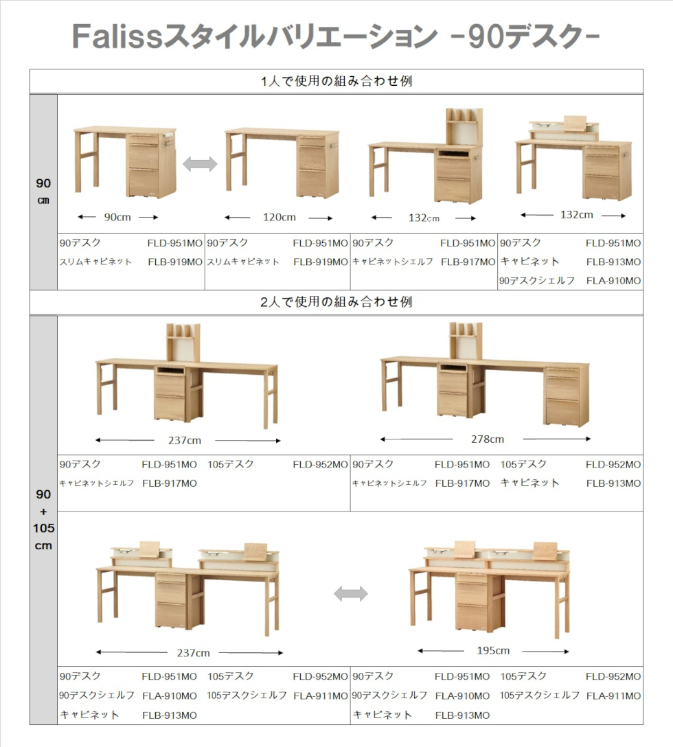 ※90デスクはスリムキャビネットのみセットできます