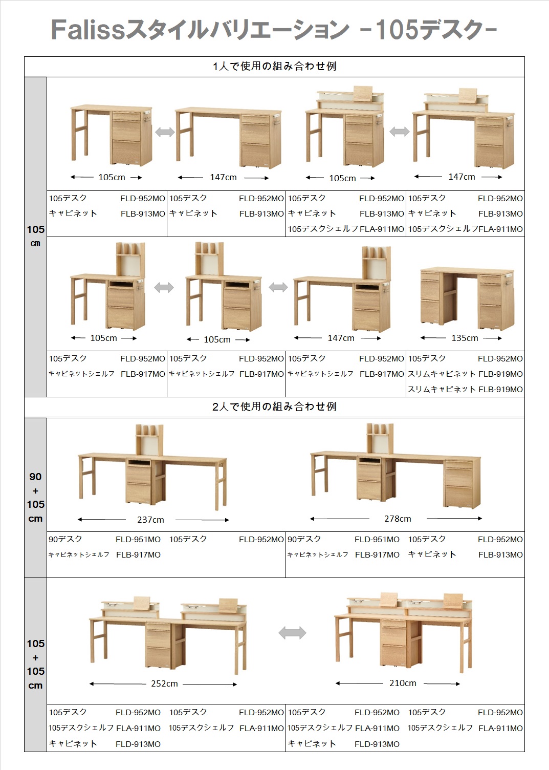 キャビネットの天板を外し(キャビネット裏に収納)、デスクは脚の位置を変更して連結します。デスクシェルフを取り付ける場合はデスク天板上のみとなります。