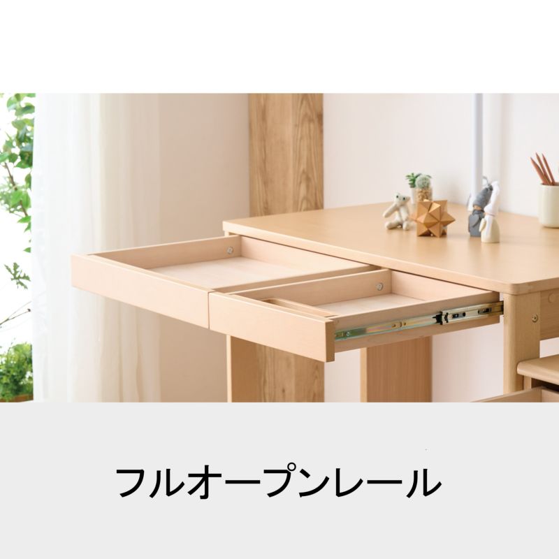 ・デスクの引き出しは全段フルオープンレールを採用。 最後まで引き出せるので、奥のものも簡単に取り出せます。
