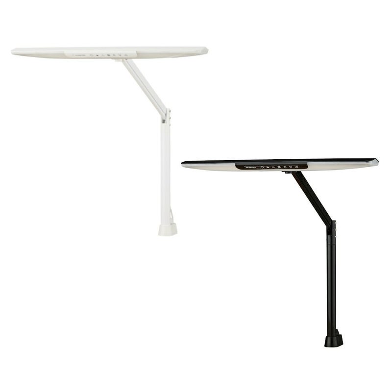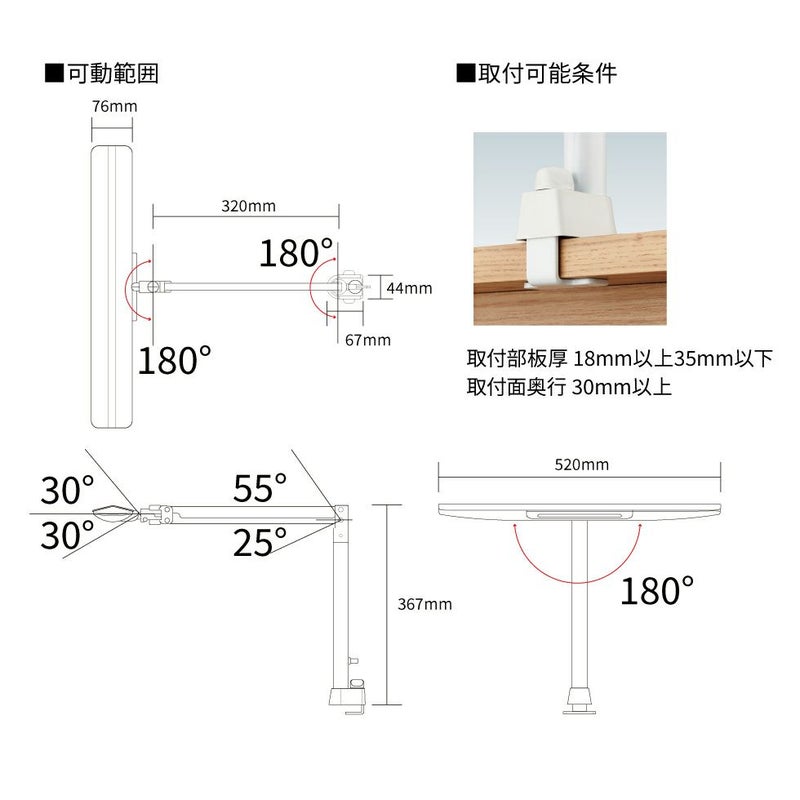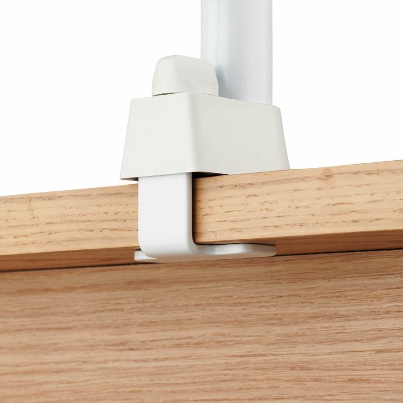 取付天板に挟み、上部の取付つまみをまわすだけの簡単取り付け。支柱がまっすぐなので、操作もしやすく自由に動かせます。