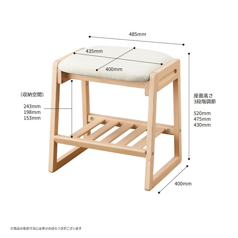 座面の高さを3段階の430・475・520㎜に調節できます。