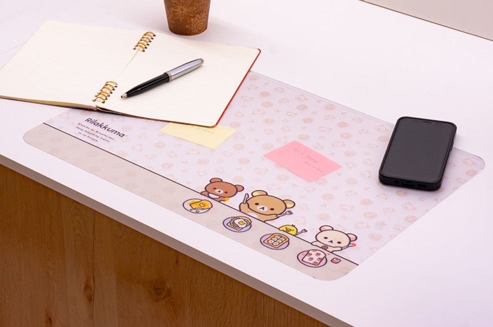 デスクマットの間にはメモや平面グッズをはさむことで仕事や趣味にも使用できます